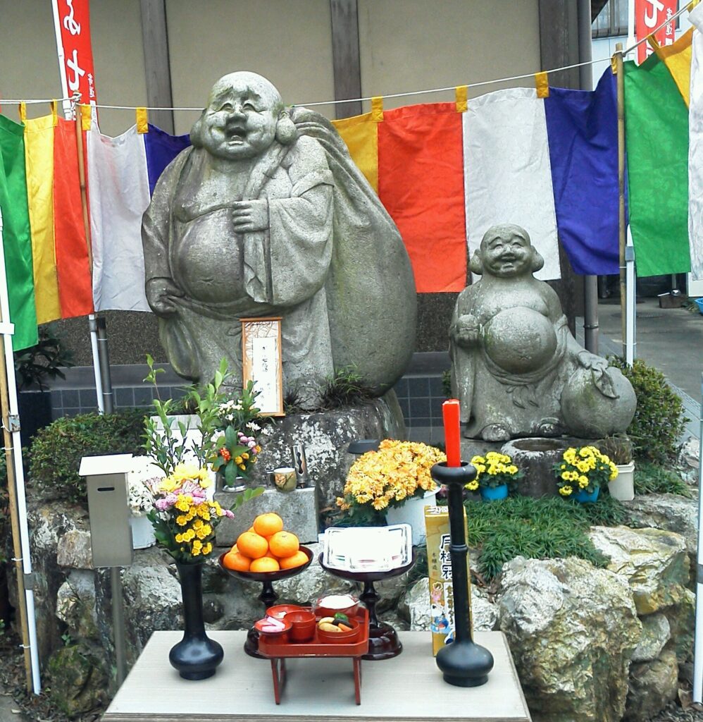 布袋様のふくよかなお顔、大きなお腹、大きな袋にふれていただき幸運つかんでください。中国のお寺では、どこも入り口の門には、布袋様が鎮座され、皆様方に親しまれ、幸いを与えています。どうぞお参りください。お菓子撒きの余興もあります。